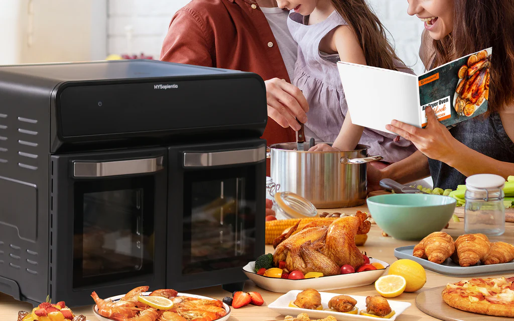 Explore our Dual Air Fryer Oven, equipped with advanced features to cook two dishes simultaneously, offering efficiency and versatility for a variety of meals!